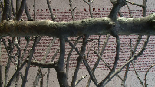 En arrière plan de la colonne de rameaux, figure les noms de 1038 Compagnons de la Libération
