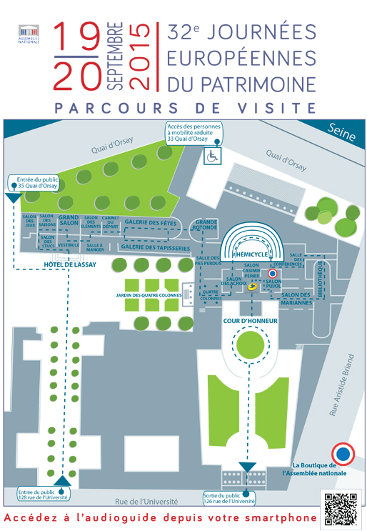 Onglets de navigation dans « Informations pratiques » Plan d'accès Horaires Onglet actif : Plan d'accès Assemblée nationale "> Journée du Patrimoine 2015 - Plan © Assemblée nationale