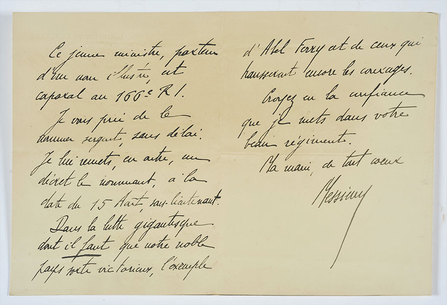 | Correspondance rédigée par Abel Ferry sur les pertes au Chemin des Dames (9 août 1917). | |